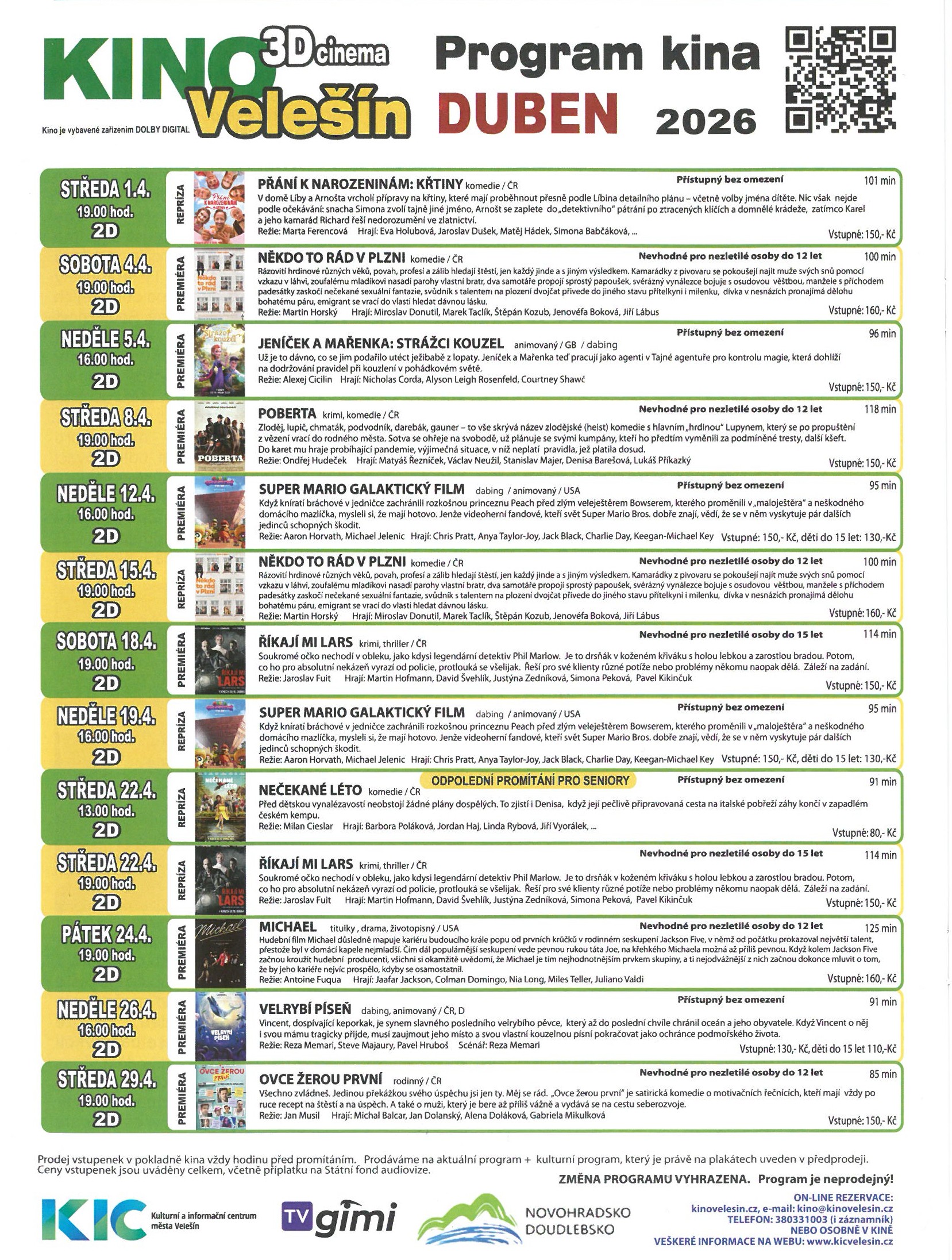 program kina Velešín duben 2026